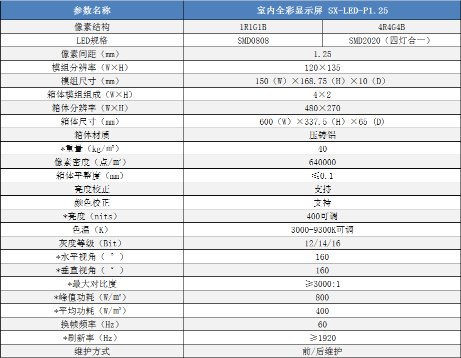 P1.25室內小間距高清全彩LED顯示屏技術參數: