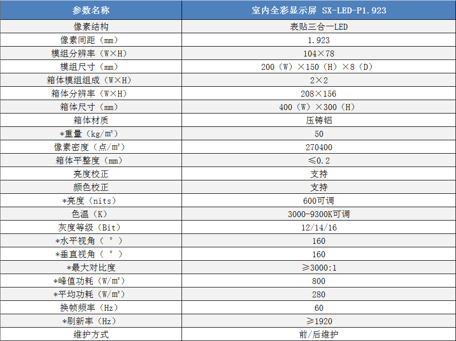 P1.923室內小間距高清全彩LED顯示屏技術參數: