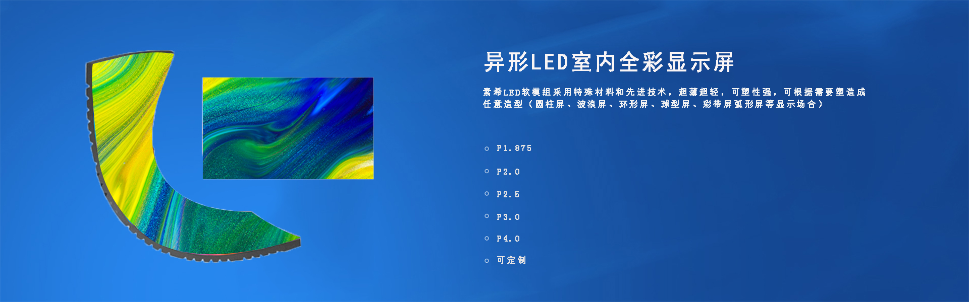 LED無縫拼接軟屏也稱作柔性LED顯示屏,軟模組、柔韌好、任意可彎曲,安裝可以是任意曲面,適合藝術(shù)造型;采用特殊材料和先進(jìn)技術(shù),超薄超輕,單個模組的厚度僅8mm,不僅輕薄,可塑性強,該系列LED軟模組屬于異形LED大屏,采用可彎曲pcb和硅膠底殼套件,柔韌性強,可彎曲弧度最高120°(適用于圓柱屏、波浪屏、環(huán)形屏、球型屏、彩帶屏弧形屏等顯示場合)